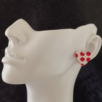 Παιχνιδιάρικα καρφωτά σκουλαρίκια σε σχήμα καρδιάς με χαρούμενο μοτίβο κόκκινου πουά. Εξαιρετικά ελαφριά και ιδανικά για vintage/ρετρό εμφανίσεις.
