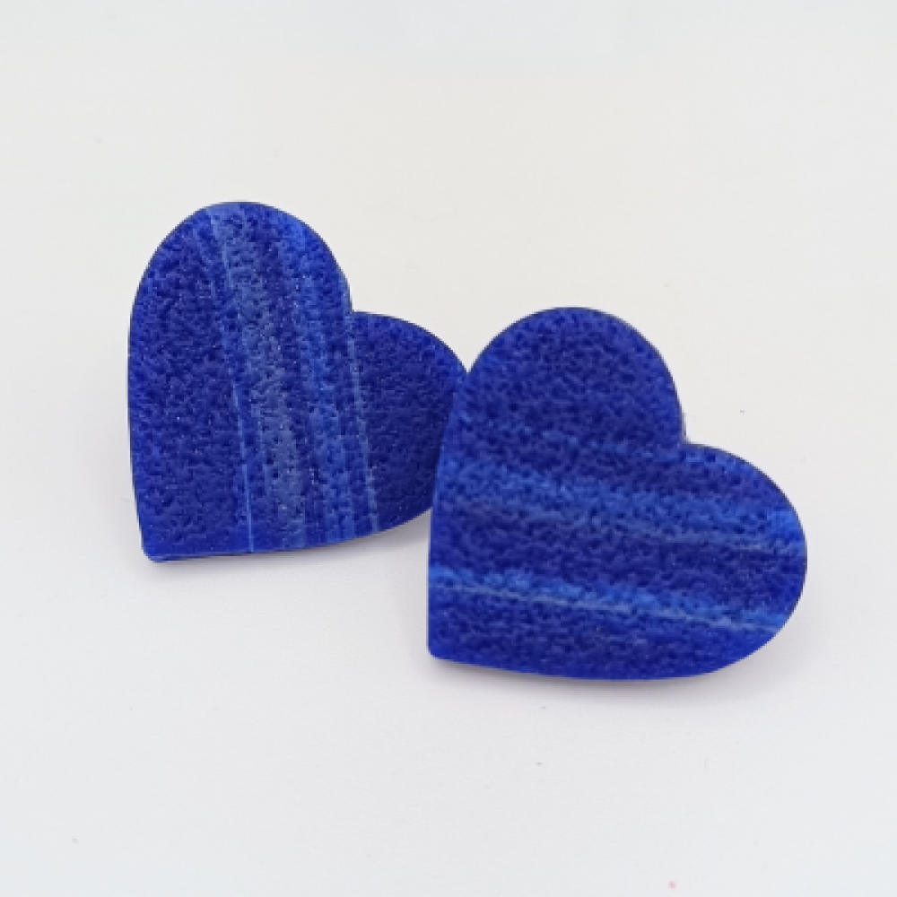 Αναβαθμίστε το στυλ σας με αυτά τα χειροποίητα σκουλαρίκια-καρδιές, εμπνευσμένα από τη γεωλογική ομορφιά! Η βάση είναι σε πλούσιο, βαθύ μπλε (Royal Blue), με οριζόντιες ρίγες από πιο ανοιχτές μπλε αποχρώσεις, δημιουργώντας ένα πολυεπίπεδο και μαρμάρινο αποτέλεσμα που θυμίζει τον ημιπολύτιμο λίθο λάπις λάζουλι. Κατασκευασμένα από πολυμερή πηλό (fimo), είναι εξαιρετικά ελαφριά και άνετα, προσφέροντας μια σοφιστικέ και ταυτόχρονα δυναμική πινελιά. Είναι το τέλειο κόσμημα για όσες αγαπούν τους έντονους τόνους και το μοναδικό, artisanal στυλ. Χρώμα: Μπλε (Βασιλικό) με Ανοιχτό Μπλε (layered) Υλικό: Πολυμερής Πηλός Κούμπωμα:Ατσάλι Διαστάσεις:4cm Στυλ: Μαρμάρινο / Statement / Chic / Λαμπερό