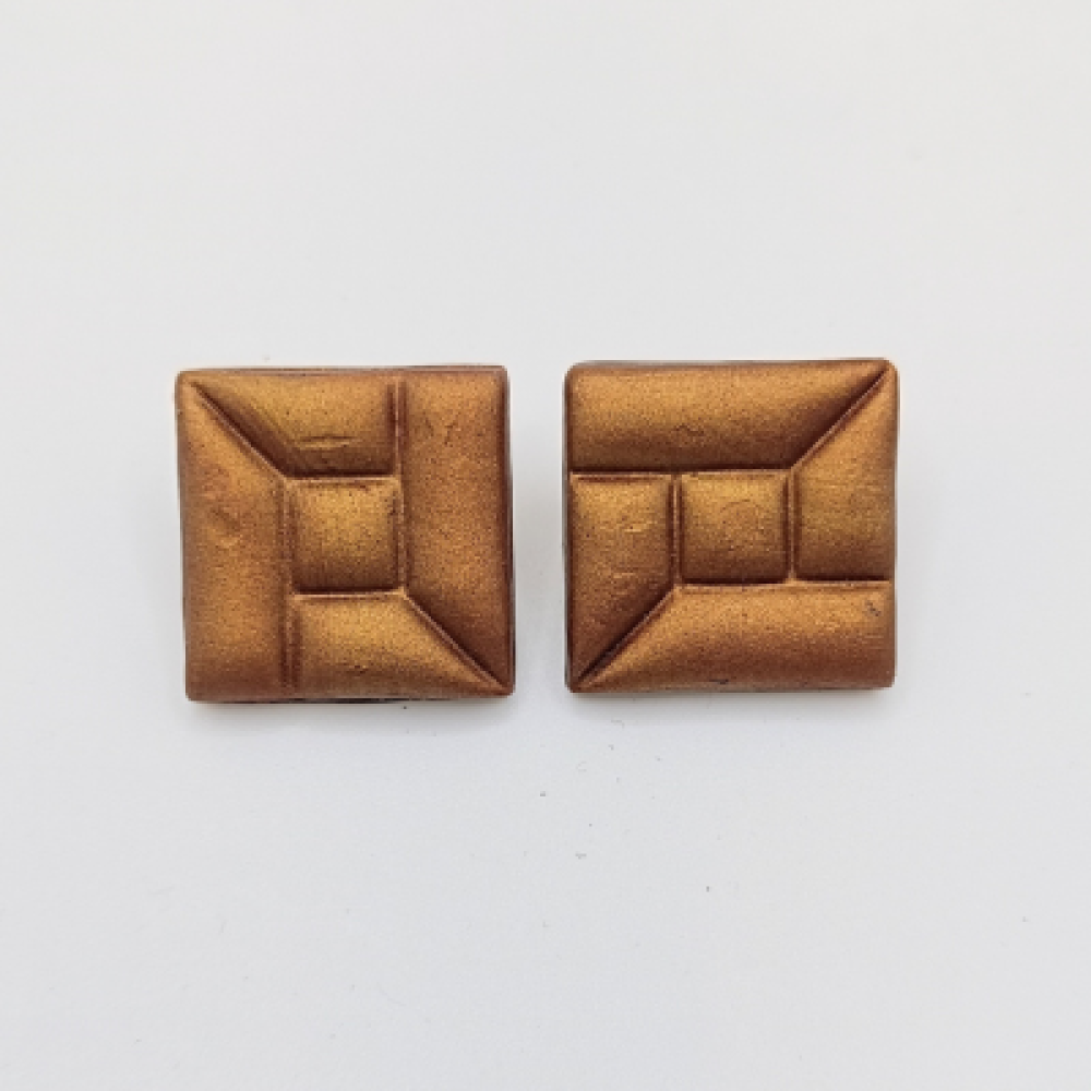 Γεωμετρική δομή και μεταλλική λάμψη.Αυτά τα χειροποίητα καρφωτά σκουλαρίκια είναι μία εκλεπτυσμένη επιλογή για όσους αγαπούν τη γεωμετρία και το Art deco στυλ.Η καθαρή γραμμή και το ανάγλυφο μοτίβο τους τα καθιστούν ιδανικά για artistic,industrial ή και κλασικές εμφανίσεις.Δομημένη γεωμετρία,μεταλλική υφή,art deco/minimal industrial,άνετα studs.