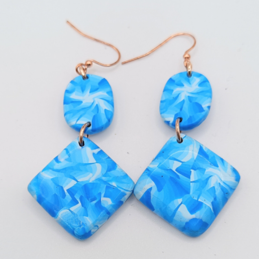 Αυτά τα χειροποίητα σκουλαρίκια-Dangles είναι ένα φωτεινό και μοντέρνο Statement κόσμημα, εμπνευσμένο από το νερό και τον πάγο. Το σχέδιο είναι κρεμαστό, αποτελούμενο από:Ένα μεγάλο ρόμβο/τετράγωνο στοιχείο. Το μοτίβο Mosaic / Shattered αποτελείται από σπασμένα κομμάτια σε διάφορες αποχρώσεις του Μπλε (από τυρκουάζ έως σκούρο), που περιβάλλονται από Άσπρο, δημιουργώντας μια εμφάνιση σαν κυματιστό νερό ή θρυμματισμένο πάγο. Το κούμπωμα είναι μεταλλικός γάντζος (Fishhook/Ganchillo) σε χρώμα Ροζ Χρυσό/Χάλκινο. Χρώμα: Μπλε (διάφοροι τόνοι) & Άσπρο (Mosaic/Shattered) Υλικό: Πολυμερικός Πηλός & Μεταλλικά στοιχεία (Ροζ Χρυσό/Χάλκινο) Κούμπωμα: Μεταλλικός Γάντζος (Fishhook/Ganchillo) Διαστάσεις: 7cm Στυλ: Geometric Dangles, Blue Mosaic, Water Pattern, Summer Statement