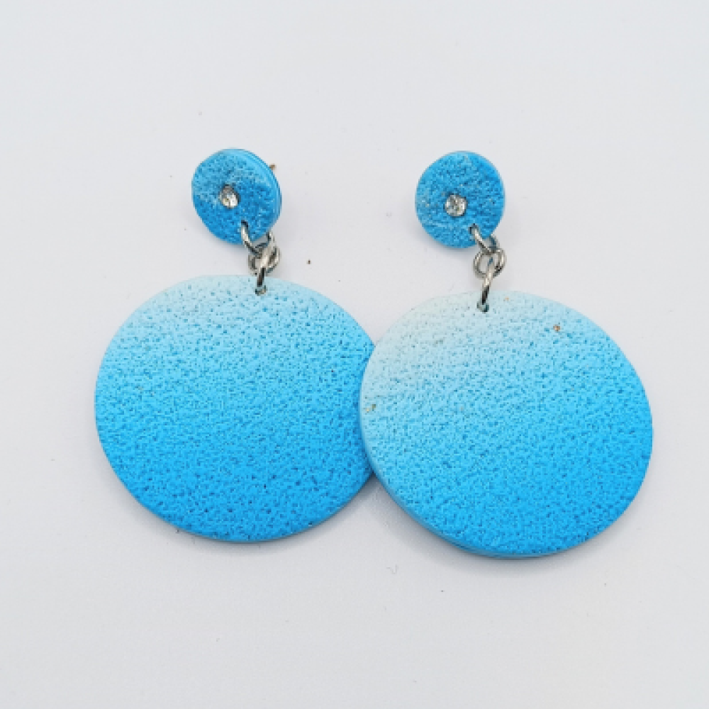 Αυτά τα χειροποίητα σκουλαρίκια-κρίκοι αποτελούν ένα μοντέρνο και ελαφρύ Summer Statement κόσμημα. Το σχέδιο είναι κρεμαστό, αποτελούμενο από:Έναν μεγάλο, οβάλ κρίκο που κρέμεται από το στρας. Η χρωματική τεχνική Ombre δημιουργεί μια ομαλή μετάβαση από Λευκό/Άσπρο (στην κορυφή) σε φωτεινό Γαλάζιο/Ανοιχτό Μπλε (προς τη βάση). Ο κρίκος έχει μια χαρακτηριστική σαγρέ / ανάγλυφη υφή (Textured Finish). Η μεταλλική σύνδεση και η βάση του στρας είναι σε χρώμα Ασημί/Λευκόχρυσο. Χρώμα: Γαλάζιο & Λευκό/Άσπρο (Ombre) Υλικό: Πολυμερικός Πηλός & Μεταλλικά στοιχεία / Στρας Κούμπωμα: Καρφάκι με Στρας (Rhinestone Stud) Διαστάσεις: 7cm Στυλ: Ombre Oval Hoops, Textured Finish, Summer Statement