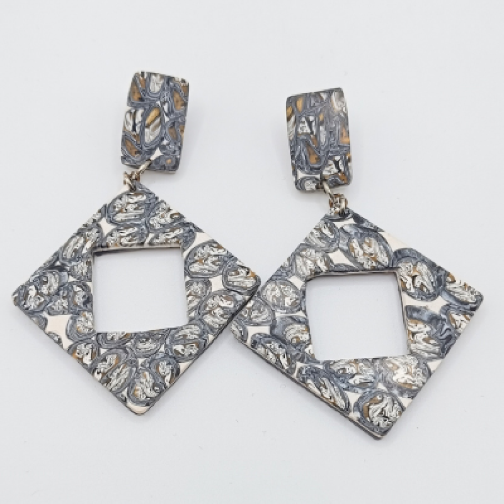 Αυτά τα χειροποίητα σκουλαρίκια-κρίκοι αποτελούν ένα μοντέρνο statement κόσμημα, με καθαρές γραμμές και εντυπωσιακό μέγεθος. Ο μεγάλος τετράγωνος κρίκος (Hoop) είναι ελαφρύς και κρεμαστός από ένα μικρό στρογγυλό καρφάκι. Το μοτίβο είναι ένα ρευστό Marble, που συνδυάζει διάφορους τόνους του Γκρι με Λευκό/Άσπρο, προσδίδοντας μια πολυτελή, μινιμαλιστική εμφάνιση. Χρώμα: Γκρι & Άσπρο (Marble) Υλικό: Πολυμερικός Πηλός & Μεταλλικά στοιχεία Κούμπωμα: Καρφάκι Ατσάλι Κατηγορία: Floral Διαστάσεις: 7cm Στυλ: Statement Hoops, Marble Geometric, Minimal Grey