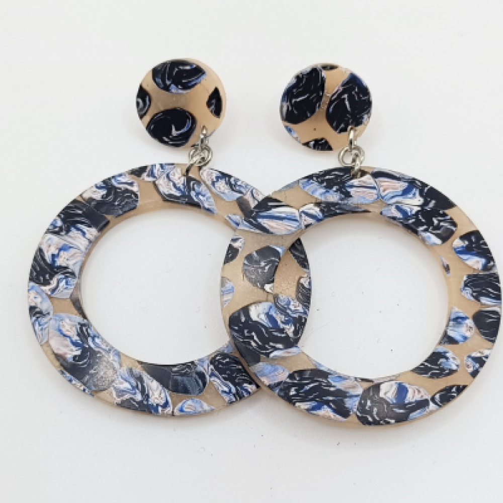 Αυτά τα χειροποίητα σκουλαρίκια-κρίκοι αποτελούν ένα μοντέρνο statement κόσμημα, με καθαρές γραμμές και εντυπωσιακό μέγεθος. Ο μεγάλος κρίκος (Hoop) είναι ελαφρύς και κρεμαστός από ένα μικρό στρογγυλό καρφάκι. Το μοτίβο είναι ένα ρευστό Marble, που συνδυάζει διάφορους τόνους του Γκρι με Λευκό/Άσπρο, προσδίδοντας μια πολυτελή, μινιμαλιστική εμφάνιση. Χρώμα: Γκρι & Άσπρο (Marble) Υλικό: Πολυμερικός Πηλός & Μεταλλικά στοιχεία Κούμπωμα: Καρφάκι Ατσάλι Κατηγορία: Floral Διαστάσεις: 8cm Στυλ: Statement Hoops, Marble Geometric, Minimal Grey
