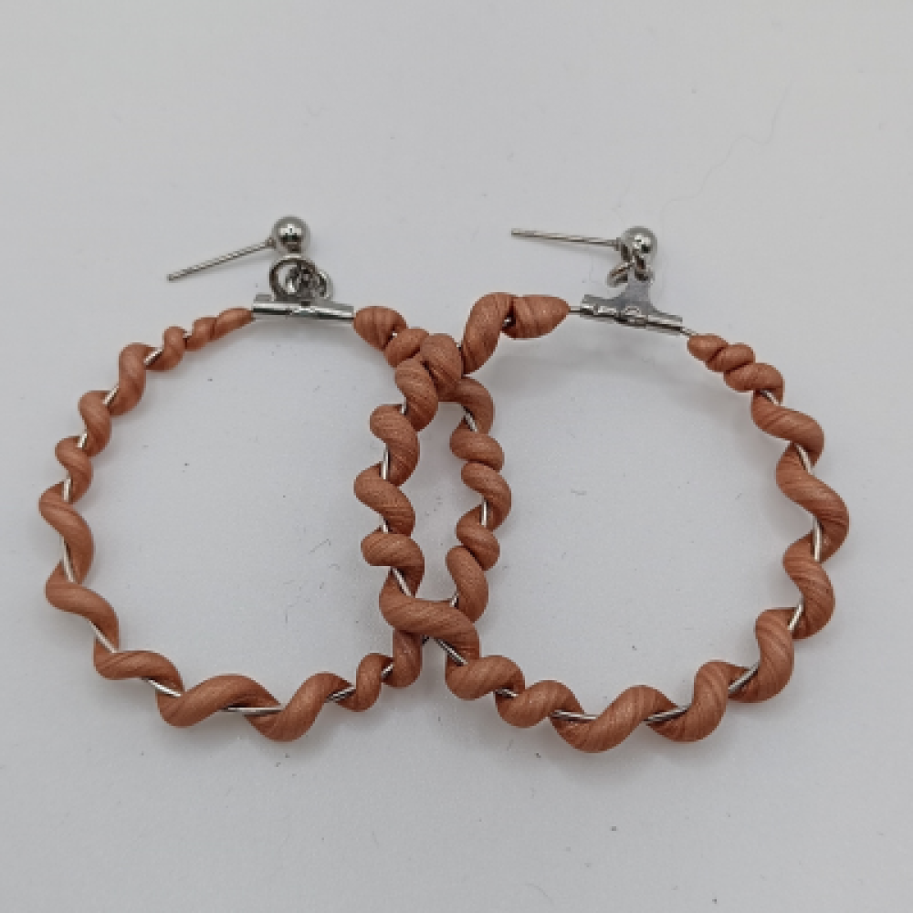Αυτά τα χειροποίητα σκουλαρίκια-κρίκοι αποτελούν ένα φωτεινό και παιχνιδιάρικο κόσμημα. Το σχέδιο είναι κρεμαστό, αποτελούμενο από:Έναν κύκλο/κρίκο που σχηματίζεται από ένα στριφογυριστό/σπείρα υλικό σε ζεστό Ροζ μεταλλικό χρώμα. Το μέγεθός τους είναι μεσαίο προς μικρό, ιδανικό για καθημερινή χρήση και για προσθήκη pop χρώματος. Χρώμα: Πορτοκαλί (Στριφογυριστό) Υλικό: [Πολυμερικός Πηλός] & Μεταλλικά στοιχεία (Ασημί) Κούμπωμα: Καρφάκι (Stud) Διαστάσεις: 6cm Στυλ: Coiled Hoops, Spiral, Summer Statement