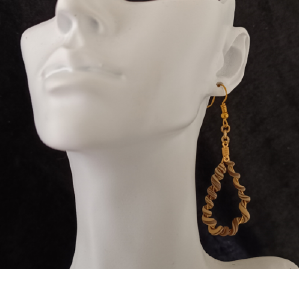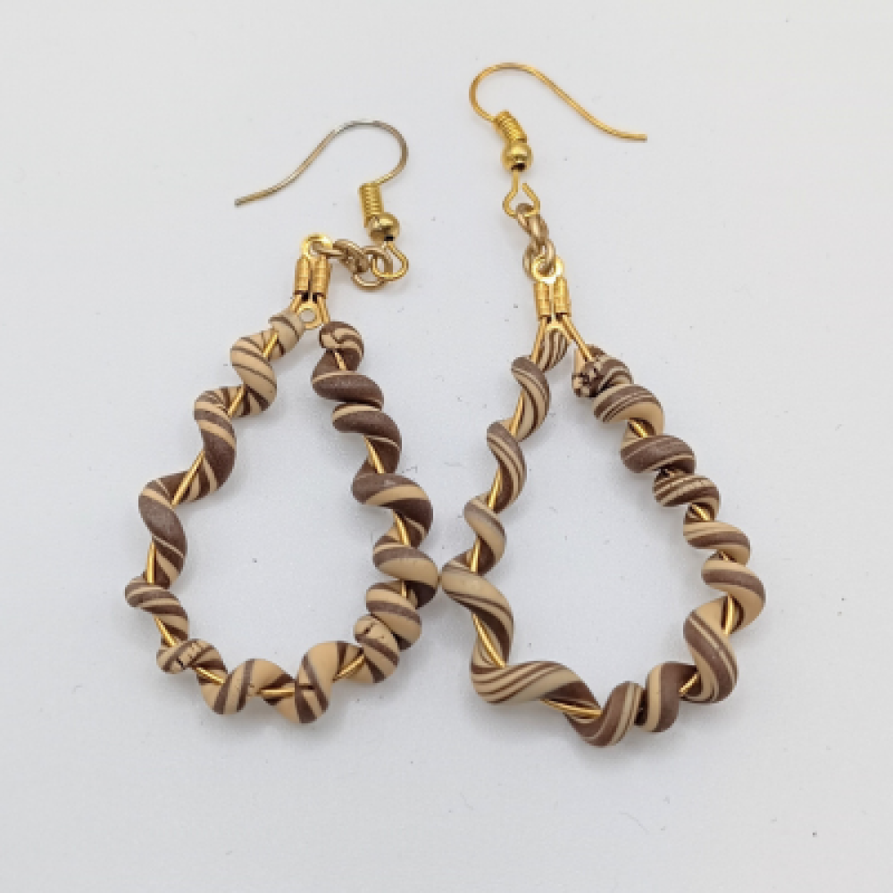 Αυτά τα χειροποίητα σκουλαρίκια-σταγόνα αποτελούν ένα φωτεινό και παιχνιδιάρικο κόσμημα. Το σχέδιο είναι κρεμαστό, αποτελούμενο από:Μία σταγόνα που σχηματίζεται από ένα στριφογυριστό/σπείρα υλικό σε ζεστό Καφέ/Μπεζ χρώμα. Το μέγεθός τους είναι μεσαίο προς μικρό, ιδανικό για καθημερινή χρήση και για προσθήκη pop χρώματος. Χρώμα: Καφέ/Μπεζ (Στριφογυριστό) Υλικό: [Πολυμερικός Πηλός] & Μεταλλικά στοιχεία Κούμπωμα: Καρφάκι (Stud) Διαστάσεις: 6cm Στυλ: Coiled Hoops, Spiral, Summer Statement