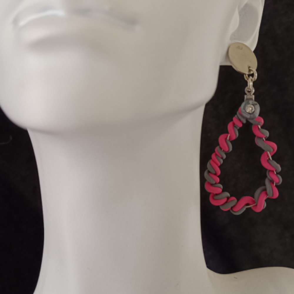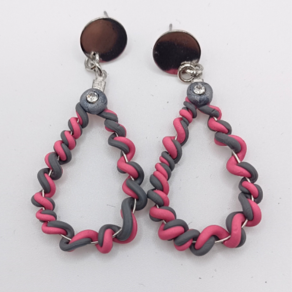 Αυτά τα χειροποίητα σκουλαρίκια-σταγόνες αποτελούν ένα φωτεινό και παιχνιδιάρικο κόσμημα. Το σχέδιο είναι κρεμαστό, αποτελούμενο από:Μία σταγόνακρίκο που σχηματίζεται από ένα στριφογυριστό/σπείρα υλικό σε ζεστό Ροζ/Γκρι χρώμα και στρας. Το μέγεθός τους είναι μεσαίο προς μικρό, ιδανικό για καθημερινή χρήση και για προσθήκη pop χρώματος. Χρώμα: Ροζ/Γκρι με στρας (Στριφογυριστό) Υλικό: [Πολυμερικός Πηλός] & Μεταλλικά στοιχεία Κούμπωμα: Καρφάκι (Stud) Διαστάσεις: 6cm Στυλ: Coiled Hoops, Spiral, Summer Statement