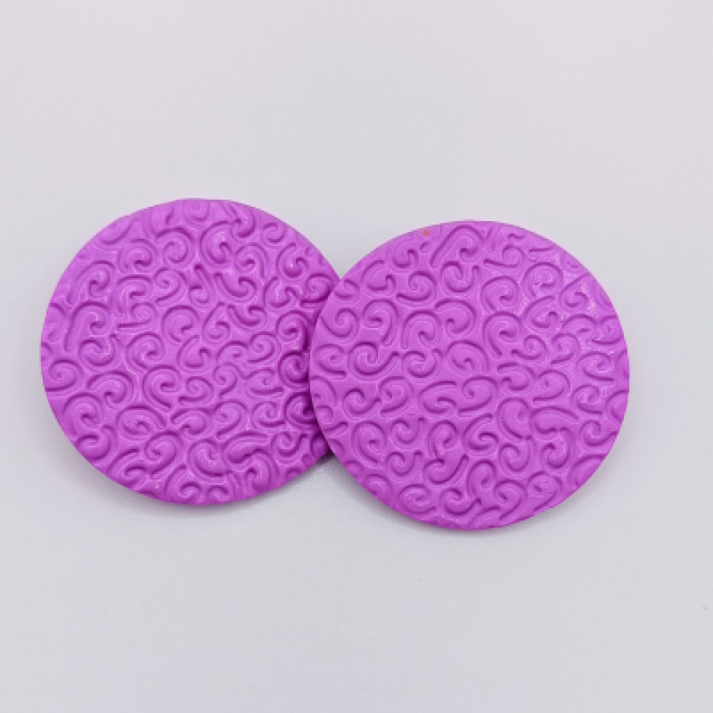 Αυτά τα χειροποίητα καρφωτά σκουλαρίκια είναι μία εκλεπτυσμένη επιλογή για μοντέρνο και Pop στυλ. Το στρογγυλό σχήμα είναι διαχρονικό, ενώ το φωτεινό Μοβ/Λιλά χρώμα προσδίδει μία παιχνιδιάρικη διάθεση. Η επιφάνεια έχει ένα εντυπωσιακό ανάγλυφο σχέδιο με σπείρες/κυματισμούς, το οποίο προσθέτει βάθος και Artistic πινελιά. Είναι ιδανικά για να προσθέσετε χρώμα και ένταση στην εμφάνισή σας. Χρώμα: Μοβ/Λιλά (Ανάγλυφο Μοτίβο Σπείρες) Υλικό: Πολυμερικός Πηλός Κούμπωμα: Ανοξείδωτο Ατσάλι Διαστάσεις: 5cm Στυλ: Geometric Studs, Pop Geometric, Artistic Studs