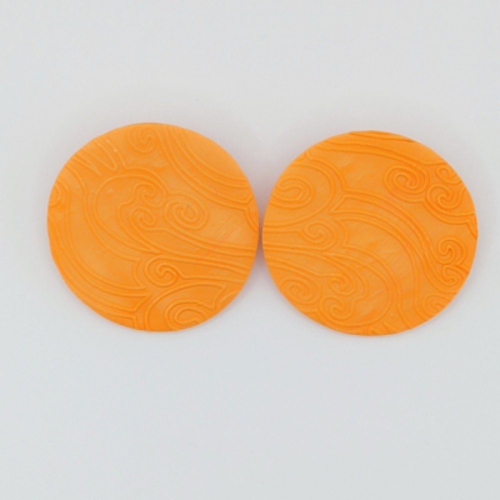 Αυτά τα χειροποίητα καρφωτά σκουλαρίκια είναι μία εκλεπτυσμένη επιλογή για μοντέρνο και Pop στυλ. Το στρογγυλό σχήμα είναι διαχρονικό, ενώ το φωτεινό Πορτοκαλί χρώμα προσδίδει μία παιχνιδιάρικη διάθεση. Η επιφάνεια έχει ένα εντυπωσιακό ανάγλυφο σχέδιο με σπείρες/κυματισμούς, το οποίο προσθέτει βάθος και Artistic πινελιά. Είναι ιδανικά για να προσθέσετε χρώμα και ένταση στην εμφάνισή σας. Χρώμα: Πορτοκαλί (Ανάγλυφο Μοτίβο Σπείρες) Υλικό: Πολυμερικός Πηλός Κούμπωμα: Ανοξείδωτο Ατσάλι Διαστάσεις: 5cm Στυλ: Geometric Studs, Pop Geometric, Artistic Studs
