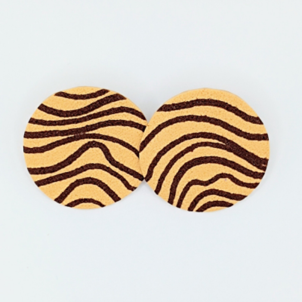 Αυτά τα χειροποίητα καρφωτά σκουλαρίκια είναι μία εκλεπτυσμένη επιλογή για μοντέρνο και δυναμικό στυλ. Το στρογγυλό/οβάλ σχήμα είναι διακριτικό, ενώ το Zebra Animal Print προσδίδει έναν εξωτικό και τολμηρό τόνο. Οι κυματιστές ρίγες σε ζεστό Μπεζ και Σκούρο Καφέ είναι ιδανικές για να αναδείξουν κάθε καθημερινή εμφάνιση. Η ανάγλυφη, ματ υφή τονίζει τη χειροποίητη φύση του κοσμήματος. Χρώμα: Μπεζ & Σκούρο Καφέ/Μαύρο (Zebra Animal Print) Υλικό: Πολυμερικός Πηλός Κούμπωμα: Ανοξείδωτο Ατσάλι Διαστάσεις: 5cm Στυλ: Geometric Studs, Animal Print, Safari Chic
