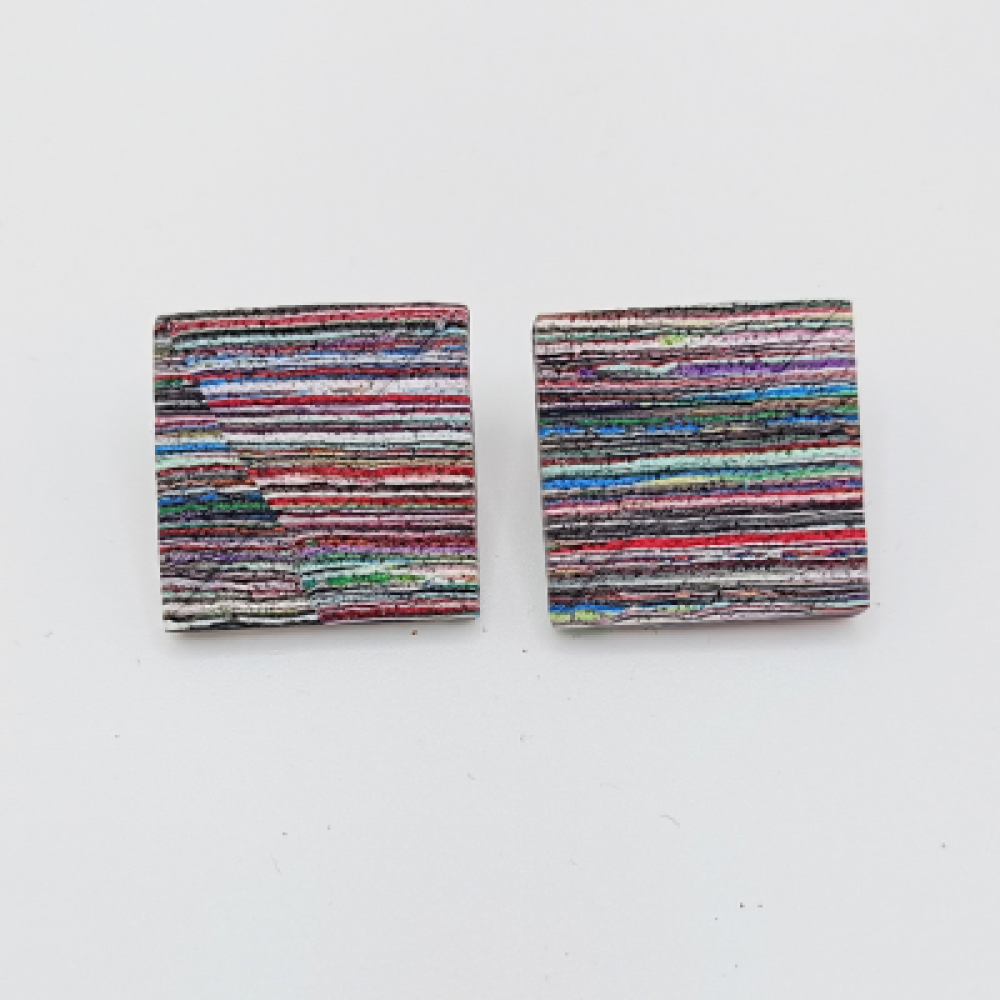 Αυτά τα χειροποίητα σκουλαρίκια είναι ένα αληθινό Pop Art statement! Το σχήμα τους είναι λιτό, τετράγωνο, ενώ το σχέδιο είναι πλούσιο και δυναμικό. Αποτελείται από πολύ λεπτές, οριζόντιες ρίγες σε μια πανδαισία χρωμάτων – κόκκινο, μπλε, πράσινο, ροζ, λευκό και μαύρο. Η ανάγλυφη υφή τους προσθέτει βάθος και αίσθηση ποιότητας. Κατασκευασμένα από πολυμερή πηλό (fimo), είναι εξαιρετικά ελαφριά. Είναι το ιδανικό αξεσουάρ για να φωτίσετε ένα μονόχρωμο ντύσιμο ή για όσες αγαπούν τα ζωηρά, αφηρημένα σχέδια. Χρώμα: Πολύχρωμες Ρίγες (Κόκκινο, Μπλε, Πράσινο, Μαύρο) Υλικό: Πολυμερής Πηλός Κούμπωμα:Ατσάλι Διαστάσεις:3.5cm Στυλ: Pop Art / Statement / Γεωμετρικό / Abstract