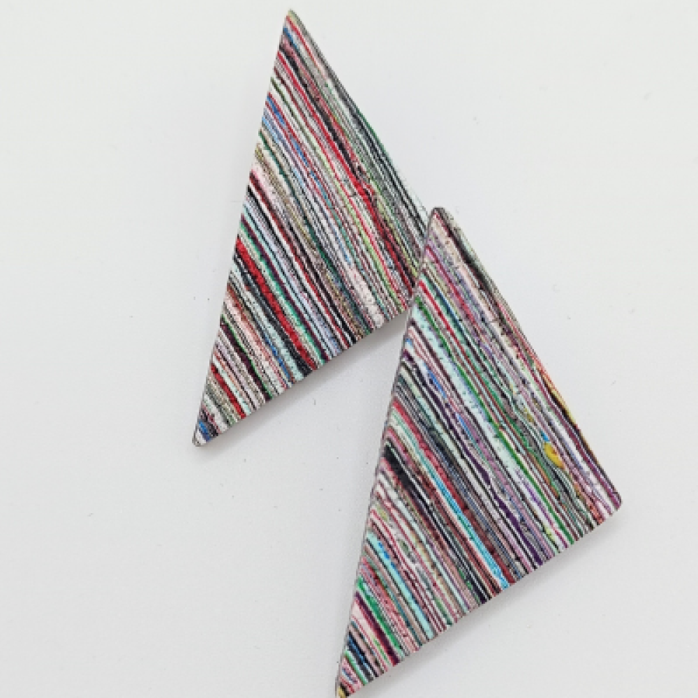 Αυτά τα χειροποίητα καρφωτά σκουλαρίκια είναι μία εκρηκτική και καλλιτεχνική επιλογή. Το τριγωνικό σχήμα είναι μοντέρνο και δυναμικό. Η επιφάνεια είναι ένα μικρό, έντονο έργο τέχνης με το ριγέ Marbled εφέ να εναλλάσσει ρίγες από όλα τα χρώματα του ουράνιου τόξου (Κόκκινο, Πράσινο, Μπλε, Ροζ κ.ά.). Η ανάγλυφη υφή προσδίδει βάθος και μία αίσθηση χειροτεχνίας. Είναι ιδανικά για να προσθέσετε χρώμα και ένταση σε κάθε εμφάνιση.