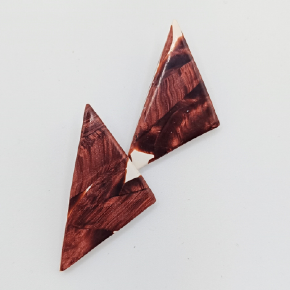 Αυτά τα χειροποίητα καρφωτά σκουλαρίκια είναι μία εκλεπτυσμένη επιλογή για μοντέρνο και δυναμικό στυλ. Το τριγωνικό σχήμα είναι ευκολοφόρετο και προσδίδει γεωμετρική ακρίβεια. Η επιφάνεια έχει ένα εντυπωσιακό Marbled εφέ, όπου το Ροζ-Χάλκινο και το Λευκό χρώμα αναμειγνύονται ρευστά, δημιουργώντας ραβδώσεις και μοτίβα. Η γυαλιστερή (High Gloss) υφή τονίζει τη λάμψη και την πολυτέλεια του υλικού. Είναι ιδανικά για να προσθέσετε έναν Luxe τόνο σε κάθε εμφάνιση. Προδιαγραφές: