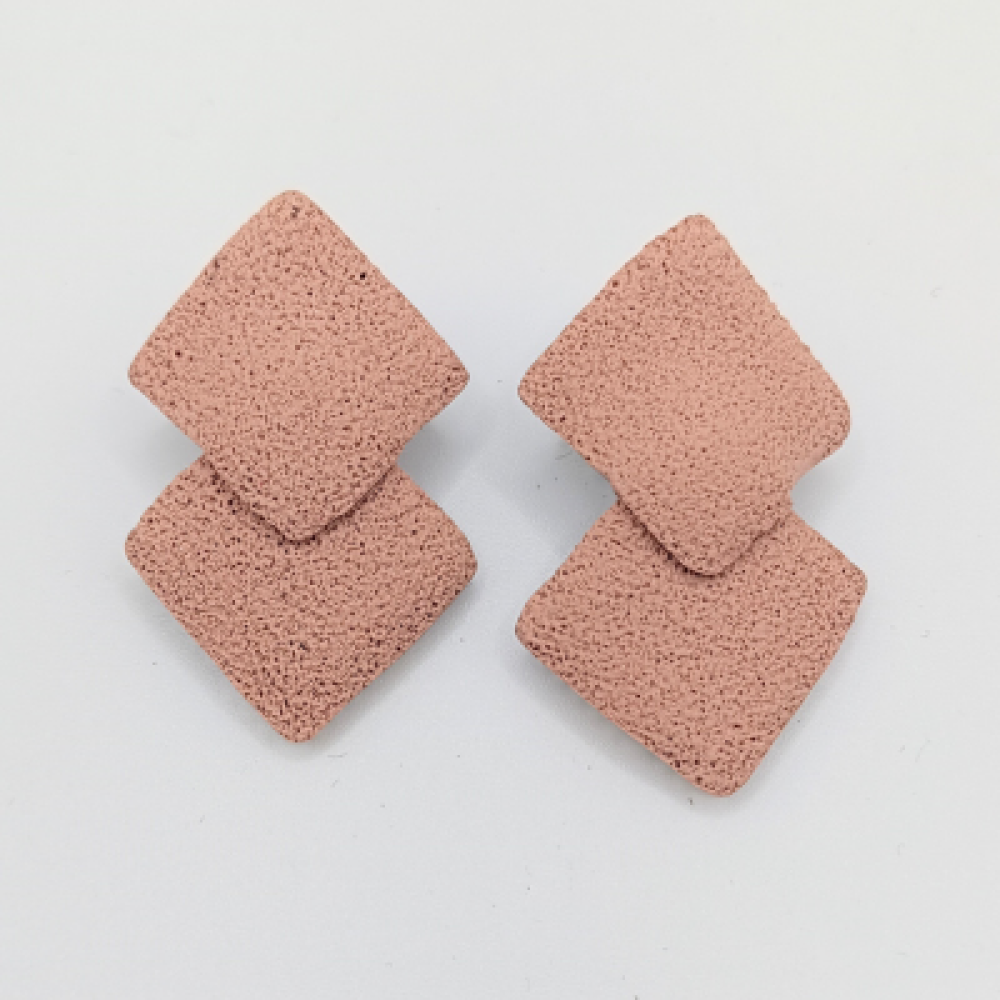 Γεωμετρία,υφή λάβας και γήινοι τόνοι.Αυτά τα χειροποίητα σκουλαρίκια αποτελούν έναν φόρο τιμής στη δύναμη της γης.Το πορώδες,ανάγλυφο φινίρισμα τους έχει σχεδιαστεί για να μιμείται την υφή της ψυχρής λάβας ή της ηφαιστειακής πέτρας,δίνοντας έναν μοναδικό,φυσικό χαρακτήρα.Υφή λάβας,διπλή γεωμετρία,χρώμα dusty rose,άνετα studs.