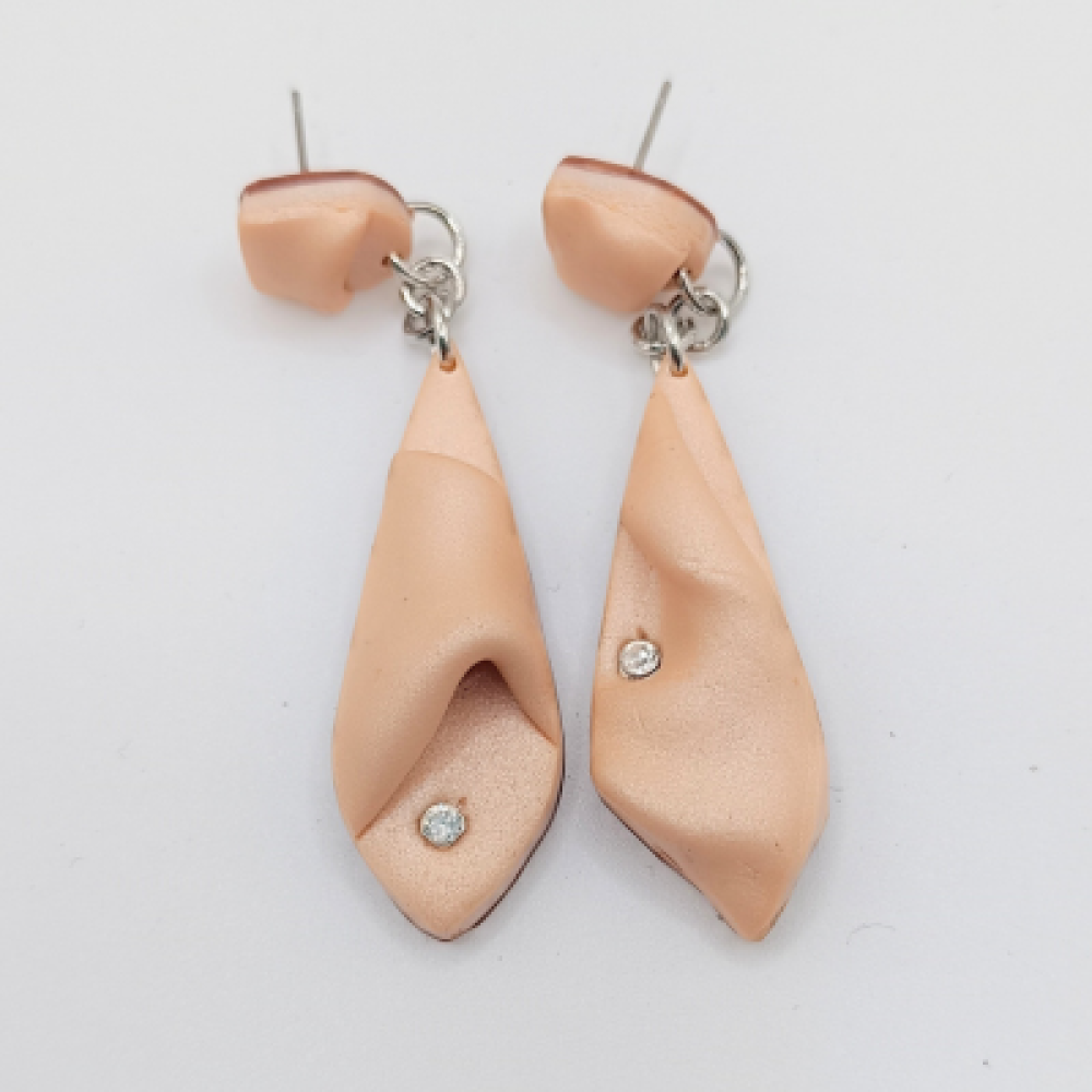 Γλυπτή φόρμα και υψηλή αισθητική.Αυτά τα χειροποίητα κρεμαστά σκουλαρίκια αποτελούν ένα μικρό,φορητό γλυπτό.Η μοναδική,ρευστή φόρμα και η ανάγλυφη υφή τους χαρίζουν την αίσθηση του Luxury και του artistic σχεδιασμού.Δυναμική φόρμα,ανάγλυφη πτυχωτή υφή,διακριτική λάμψη,nude τόνος,κομψή σύνδεση.